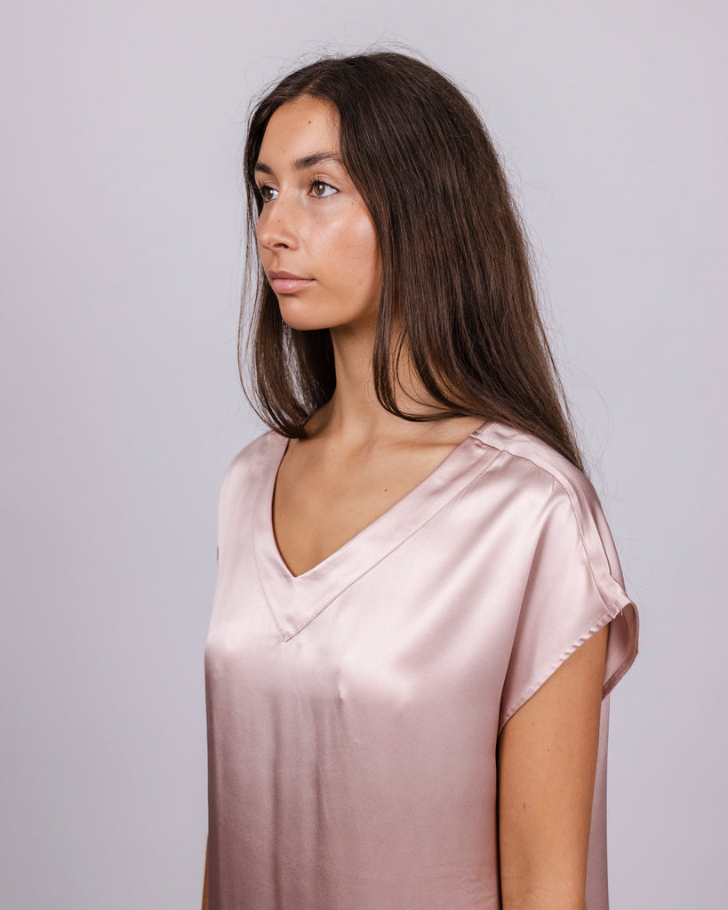 Silk Magnolia’s 100% pure silk v neck nightie is the perfect way to add a touch of luxury to your sleepwear.